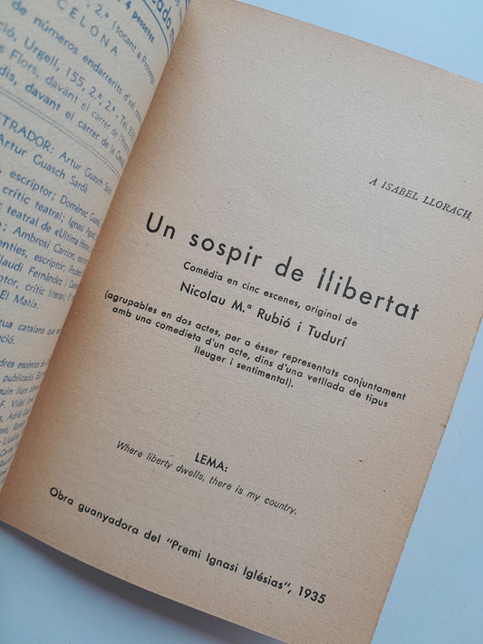 EL NOSTRE TEATRE - ANY 3, NÚM. 51, 'UN SOSPIR DE LLIBERTAT' (1 ABRIL 1936)
