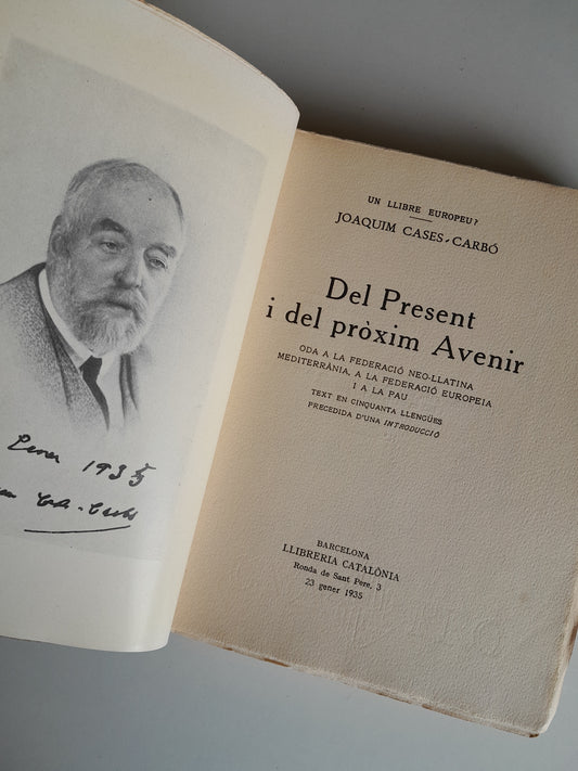 DEL PRESENT I DEL PRÒXIM AVENIR. ODA A LA FEDERACIÓ NEOLLATINA MEDITERRÀNIA - JOAQUIM CASES CARBÓ (LIB. CATALÒNIA, 1935)