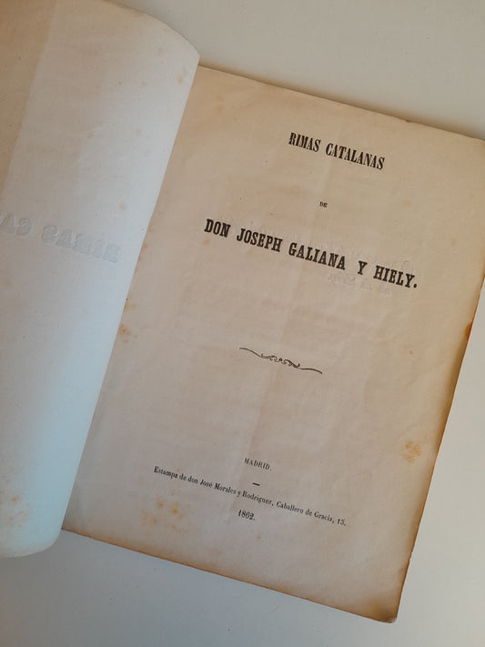 RIMAS CATALANAS - JOSEP GALIANA Y HIELY (EST. JOSÉ MORALES Y RODRÍGUEZ, 1862)