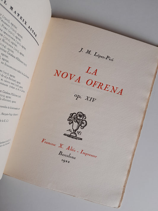 LA NOVA OFRENA, OP. XIV - J. M. LÓPEZ-PICÓ (IMP. FRANCESC X. ALTÉS, 1922)