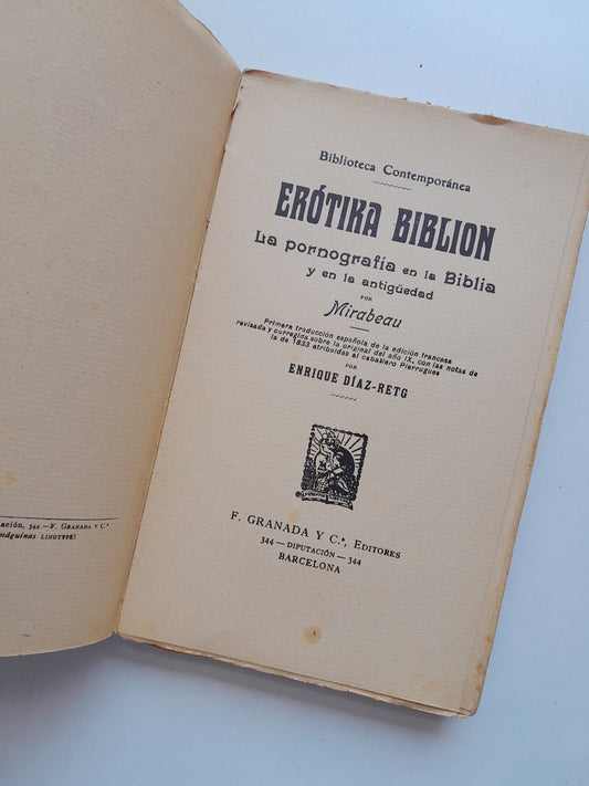 ERÓTIKA BIBLION. LA PORNOGRAFÍA EN LA BIBLIA Y EN LA ANTIGÜEDAD - MIRABEAU (F. GRANADA I CIA, c.1910)