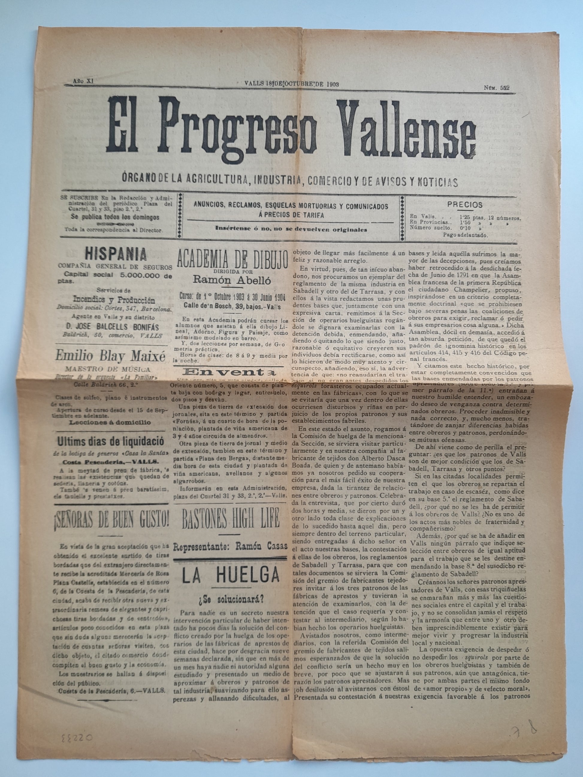 EL PROGRESO VALLENSE (VALLS) - ANY 11, NÚM. 552 (18 OCTUBRE 1903)