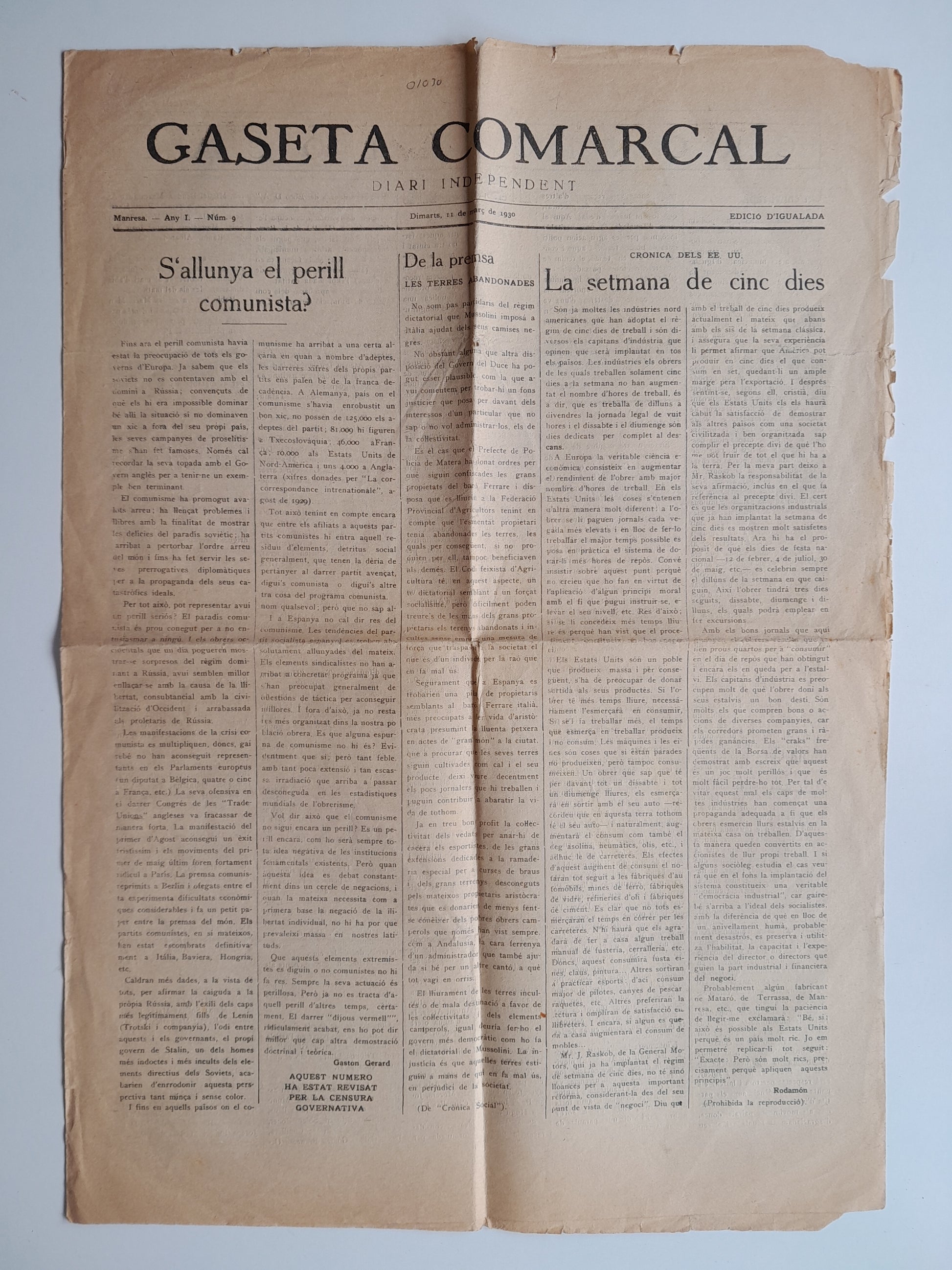 GASETA COMARCAL (MANRESA) - ANY 1, NÚM. 9 (11 MARÇ 1930)